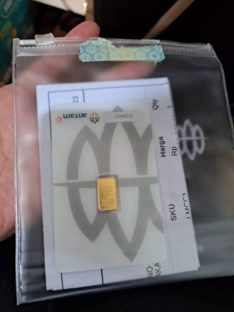 Tampilan ori 100% Warna: gold Alhamdulilah setiap bulan sisihin invest ke emas antam☺️